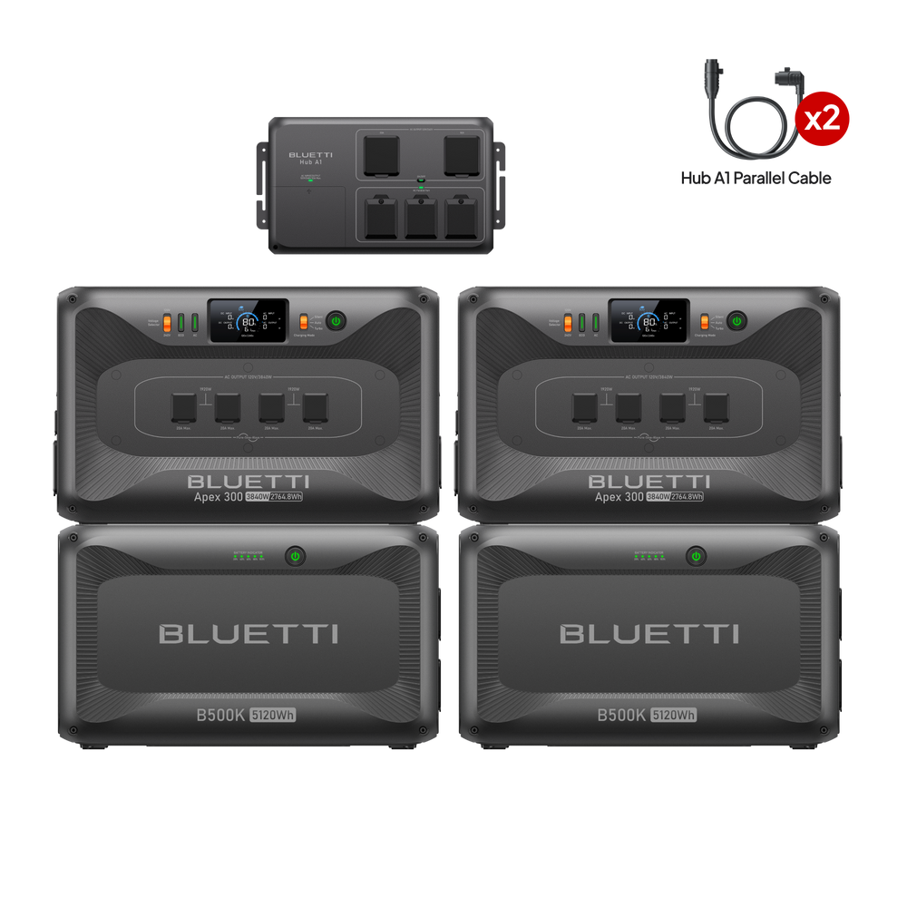 L’Apex 300 démarre à 2 764,8 Wh de capacité. Il peut être étendu avec jusqu’à 6 batteries B500K, atteignant une capacité totale de 33 484,8 Wh.