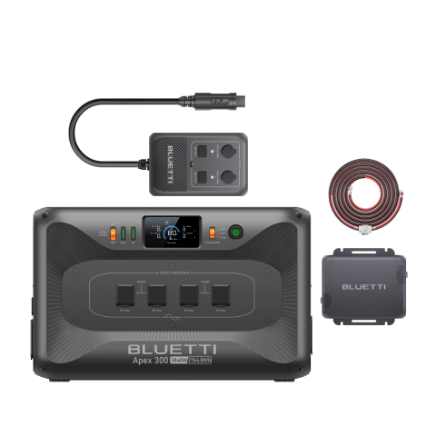- Nous recommandons de choisir un générateur solaire à haute capacité pour une autonomie plus longue et une compatibilité accrue avec vos appareils. Plus la capacité est grande, plus vous pouvez alimenter d’appareils et plus la durée de fonctionnement est longue. Par exemple, le BLUETTI Apex300 offre une capacité puissante de 2 764,8 Wh, extensible de 2,7 kWh à 58 kWh. Il peut facilement alimenter tous vos appareils essentiels. Il est également idéal pour le camping, les voyages en camping-car et l’usage domestique en cas d’urgence.