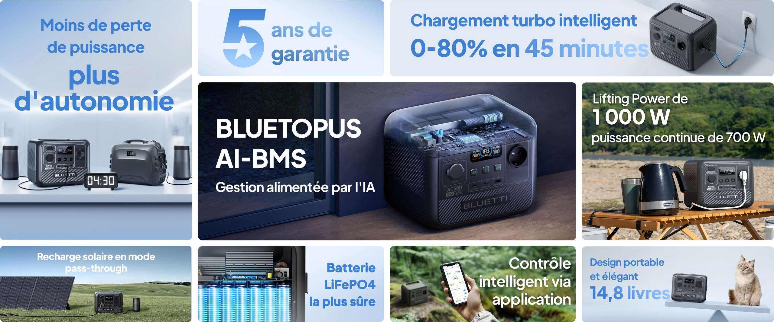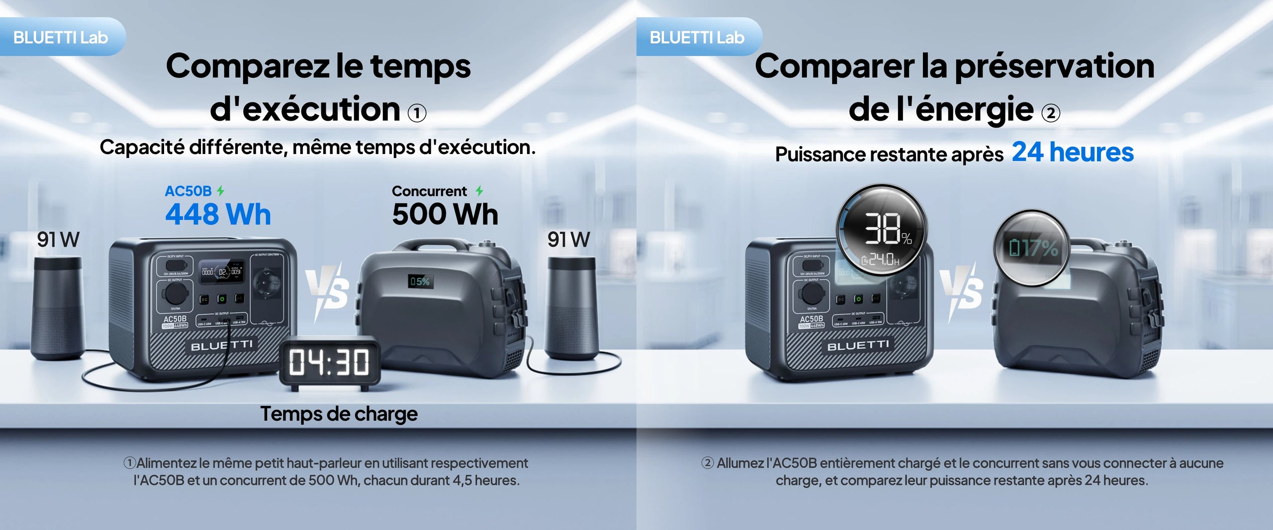 1. Puissance de sortie plus élevée : l'AC50B offre une puissance de sortie robuste de 700 W, par rapport aux 500 W typiques de nombreux concurrents.