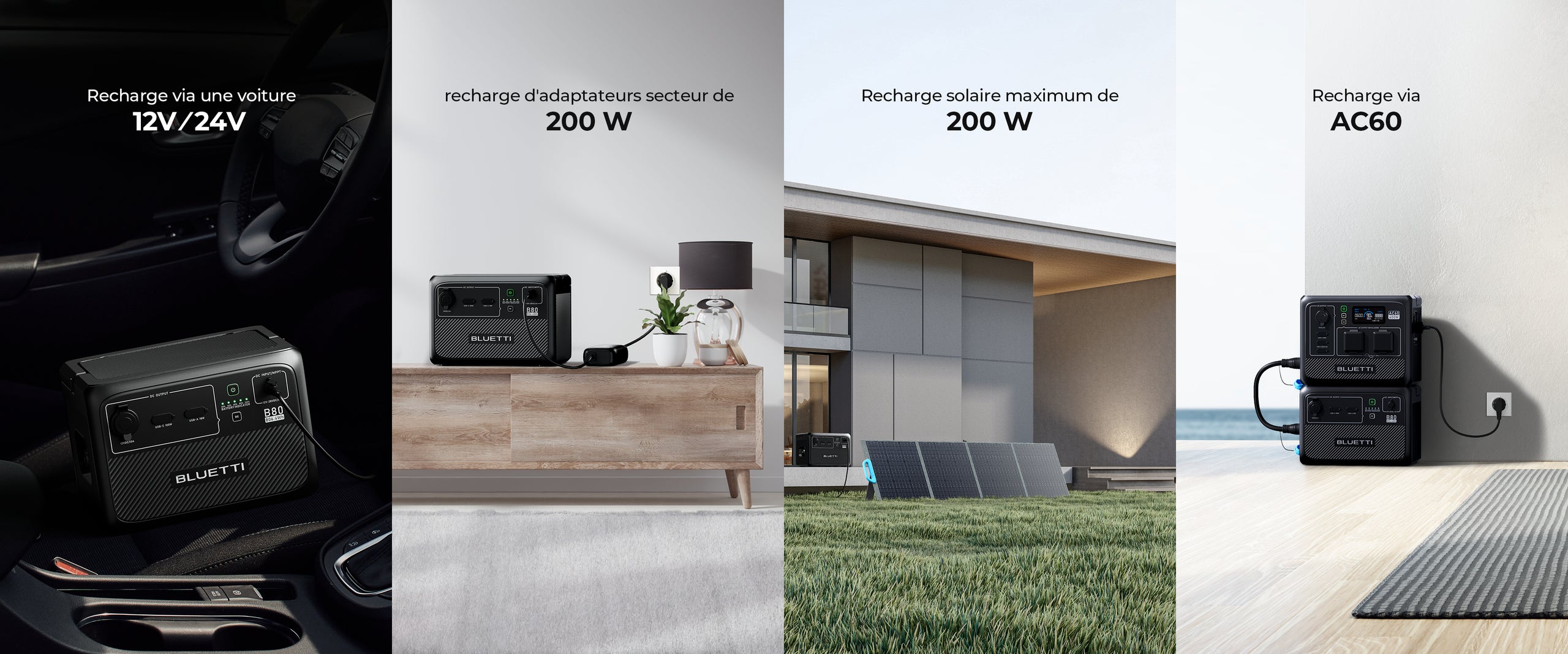 Pendant ce temps, en mode centrale électrique, la B80 peut être utilisée pour recharger les modèles EB3A/EB55/EB70/AC180 avec des accessoires supplémentaires.