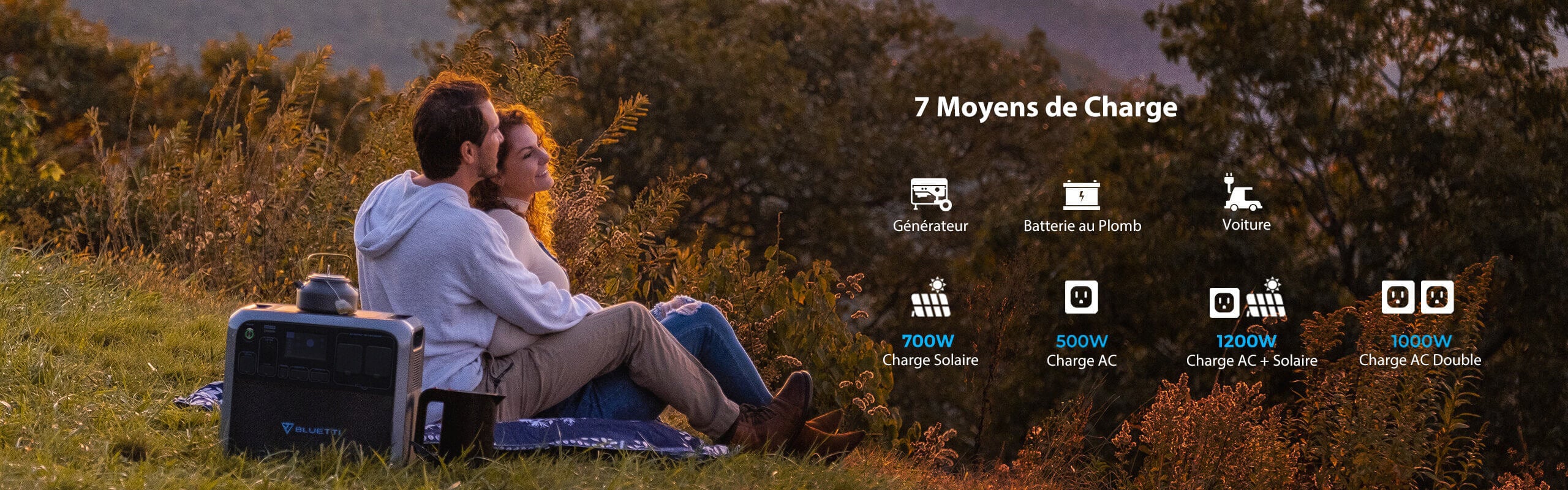 2048 Wh4 x 230 V (2.200 W au total)500 W Max.900 W Max.LiFePO₄ plus de 3500 cyclesBLUETTI App (Bluetooth)42 x 28 x 38,65 cm28,1 kg