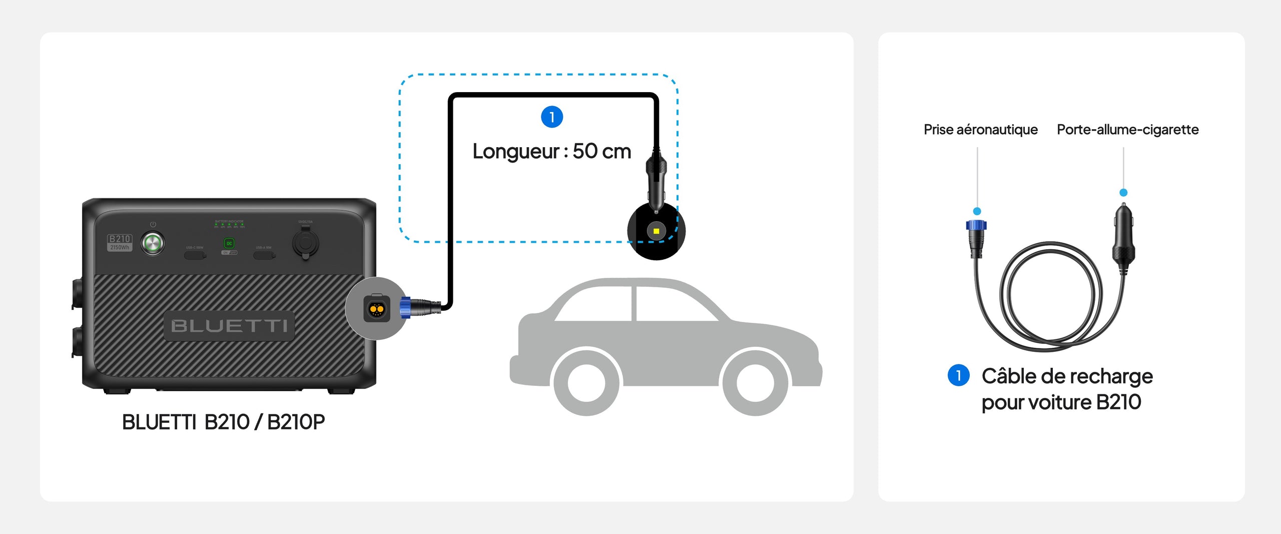 A:Au maximum deux B230 ou deux B300, un via le port d'entrée solaire par un câble et un autre via l'entrée de l'adaptateur secteur (nécessite le BLUETTI D050S - amplificateur de charge CC, vendu séparément).