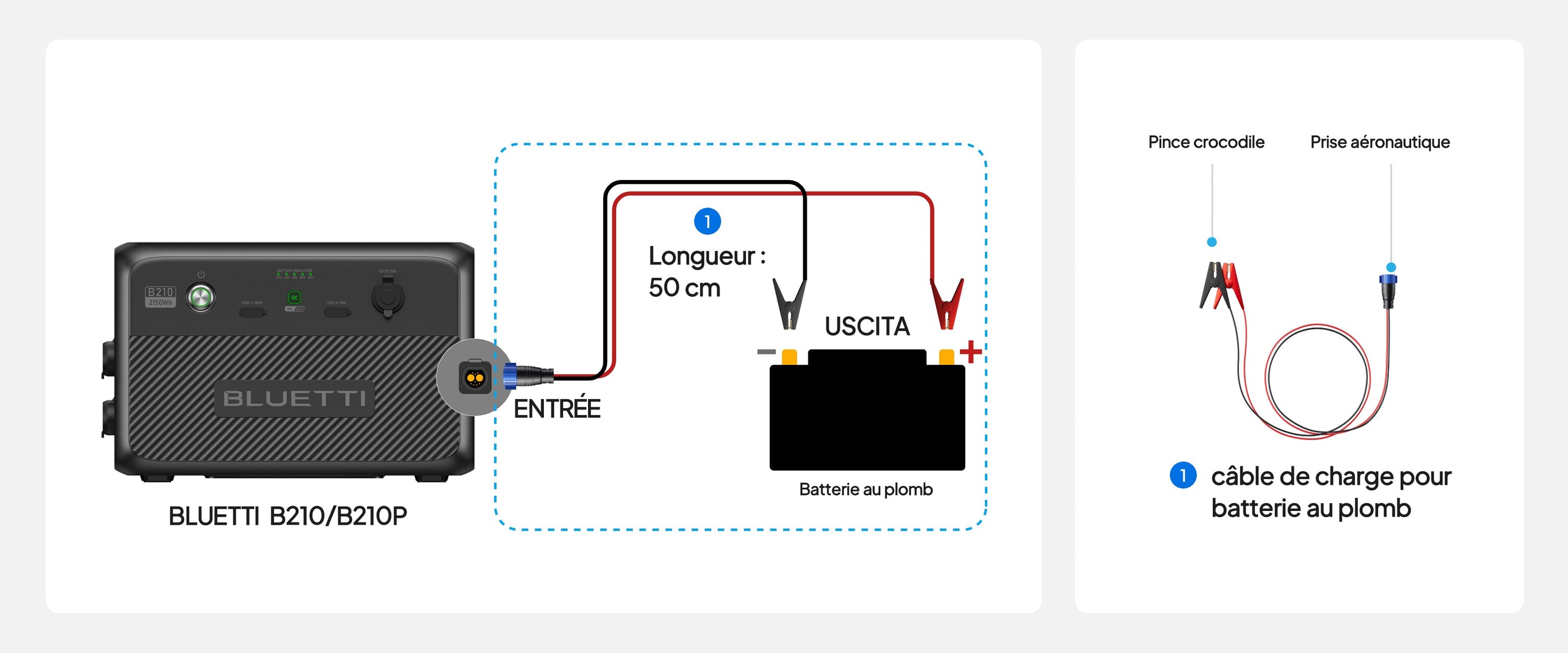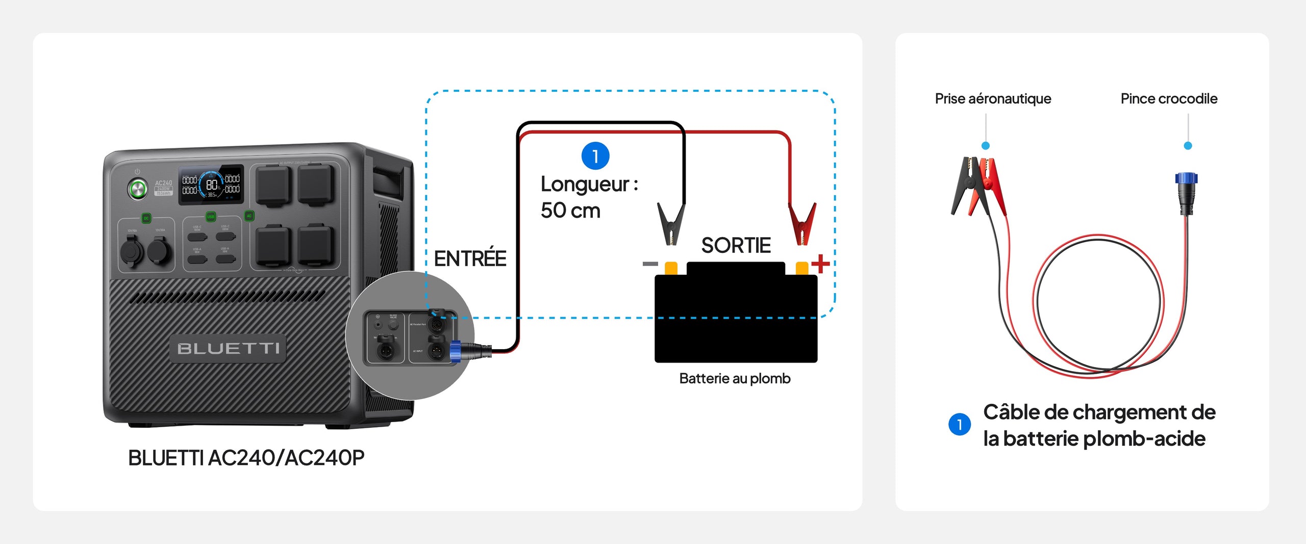 BLUETTI Câble de recharge de batterie plomb-acide 12v/24v