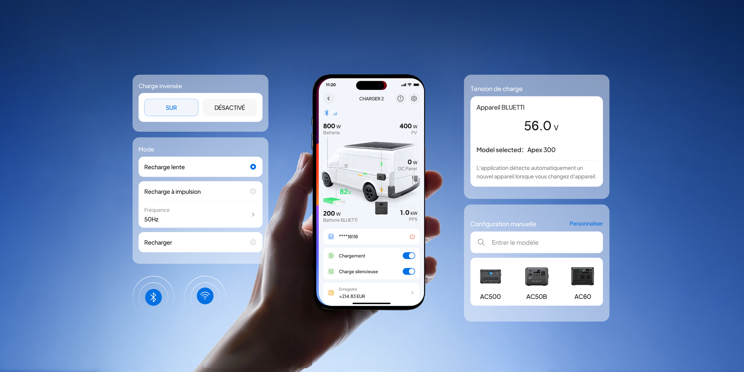Cette fonction est compatible avec la plupart des modèles BLUETTI, à l’exception de l’AC200MAX, qui nécessite un réglage manuel de la tension. -