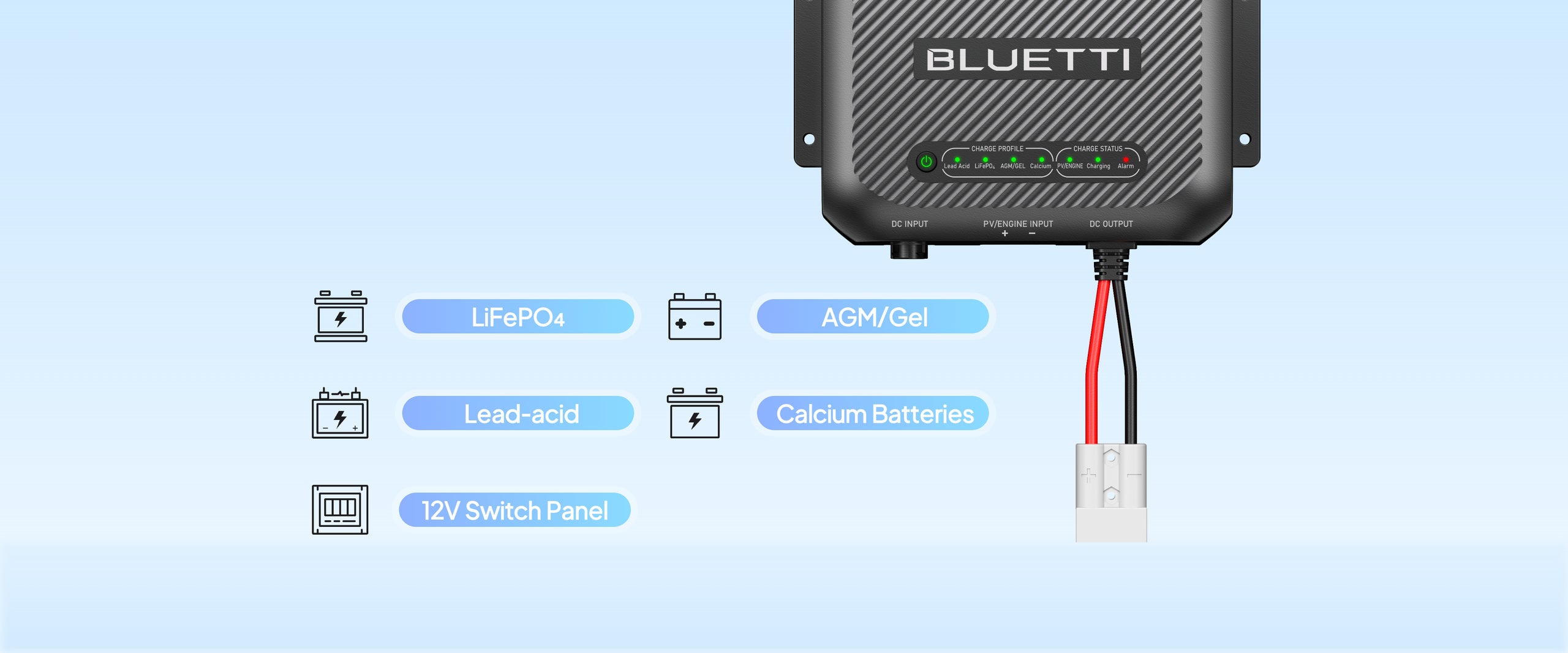 De plus, lorsqu'il est associé à l'AC200L, le D40 peut alimenter toutes vos charges 12V. Que vous naviguiez sur la route ou que vous partiez à l'aventure, le D40 vous garantit un voyage sans souci grâce à une alimentation électrique fiable.