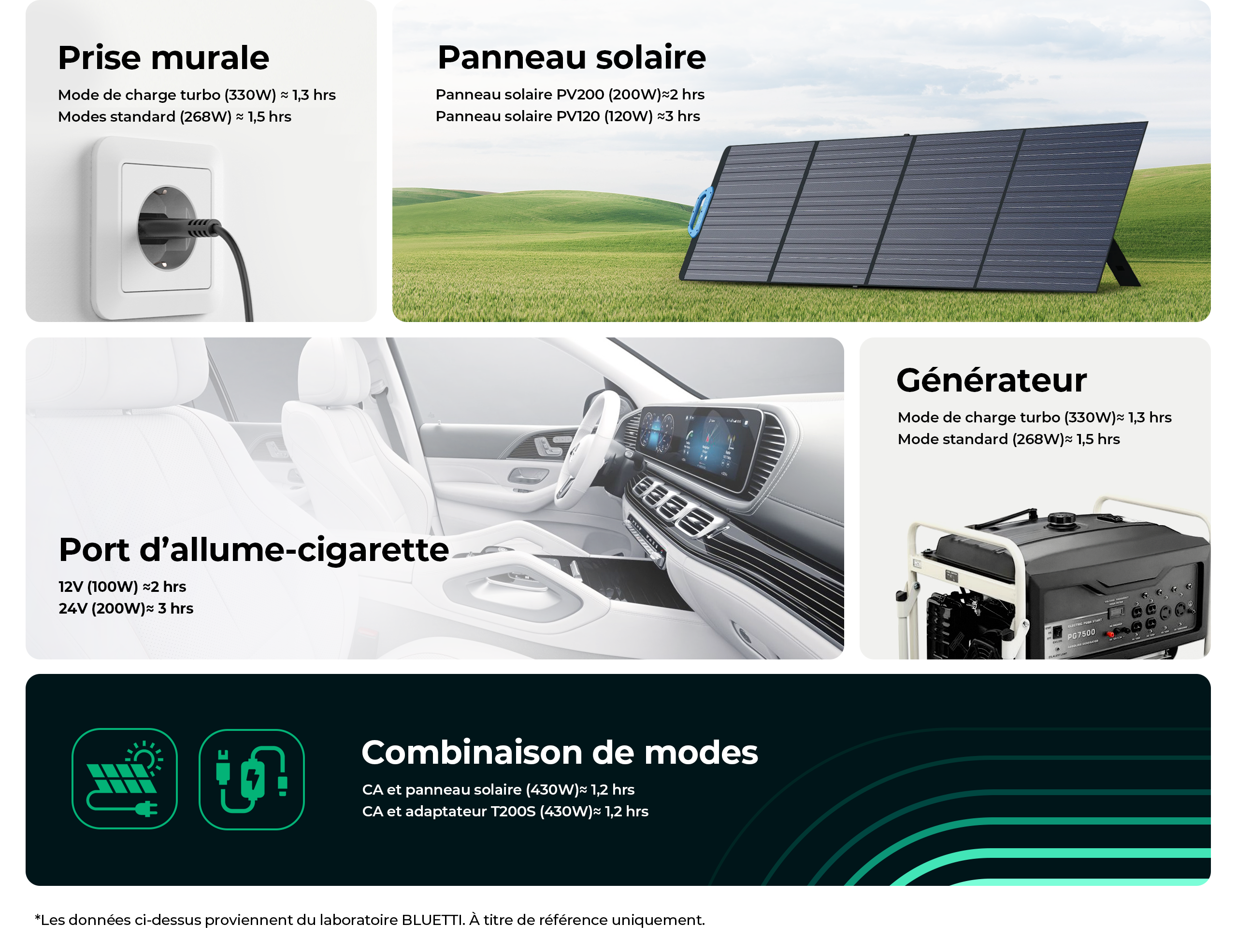 R:430 W Max. via la charge AC et la charge solaire simultanément.
