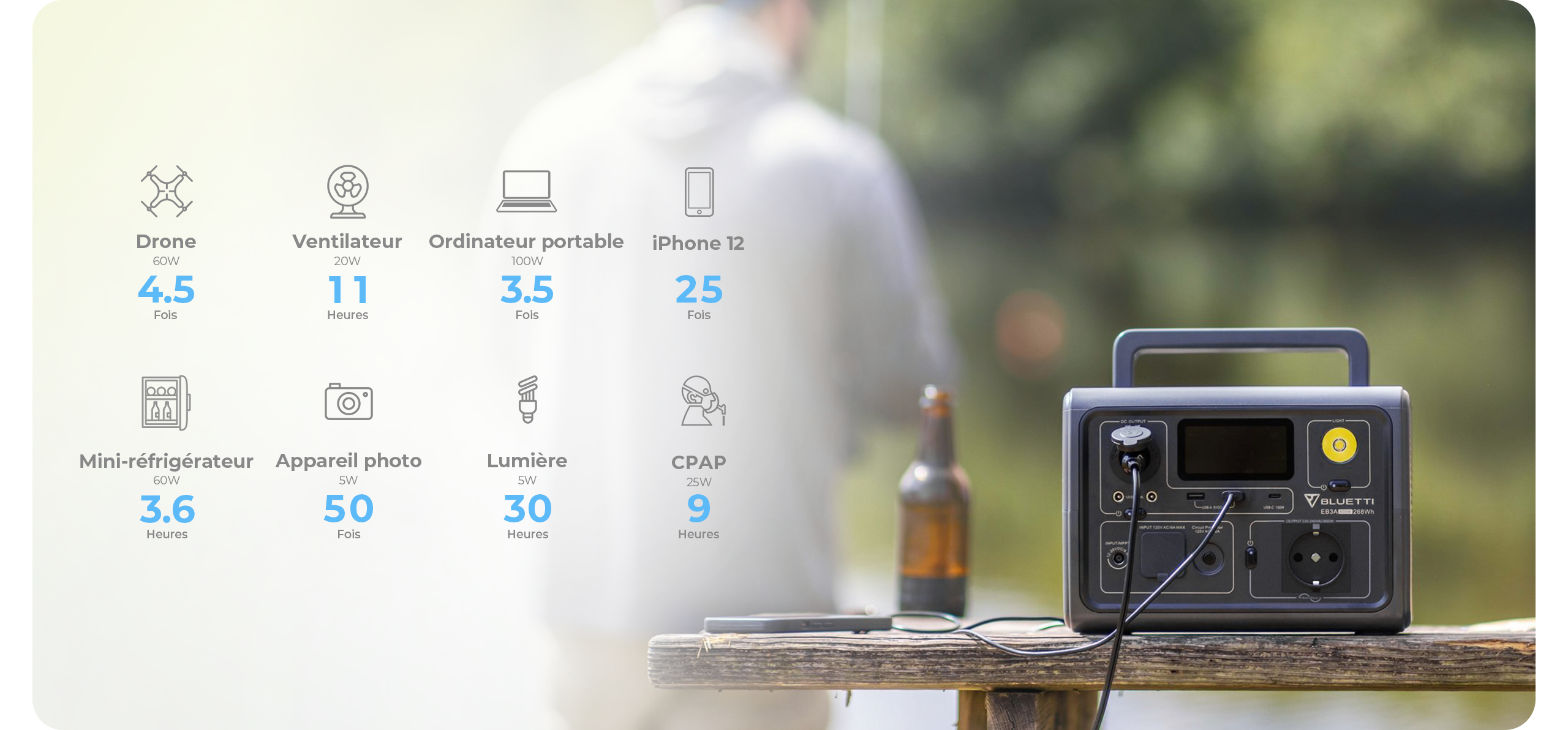 R:Temps de fonctionnement = Capacité de la batterie × DoD × η ÷ Puissance nominale de l'appareil.