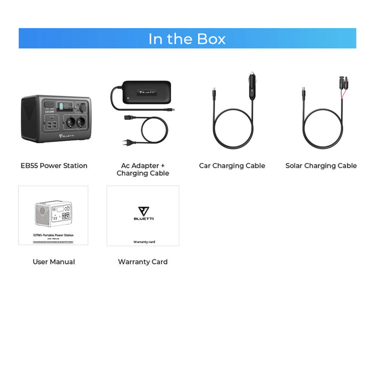R:Veuillez noter que les ports de sortie CA peuvent charger/alimenter les appareils uniquement à moins de 700 watts, et la puissance totale doit également être inférieure à 700 watts, sinon l'EB55 s'éteindra automatiquement pour la protection du circuit. Veuillez-vous assurer que votre appareil est compatible avec EB55 avant l'achat. De plus, Pour certains appareils avec moteur/compresseur intégré, la puissance de démarrage instantanée peut être 2 à 4 fois supérieure à la puissance nominale, qui peut dépasser la limite supérieure de l'EB55.