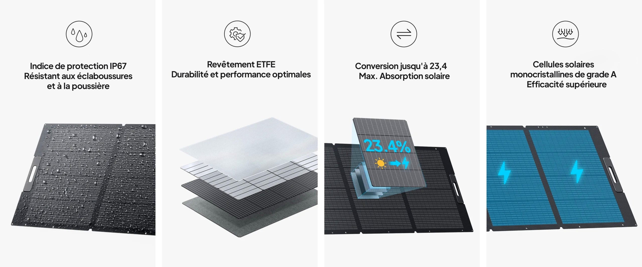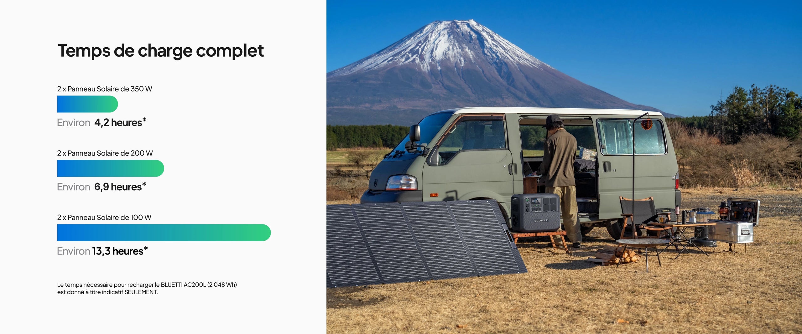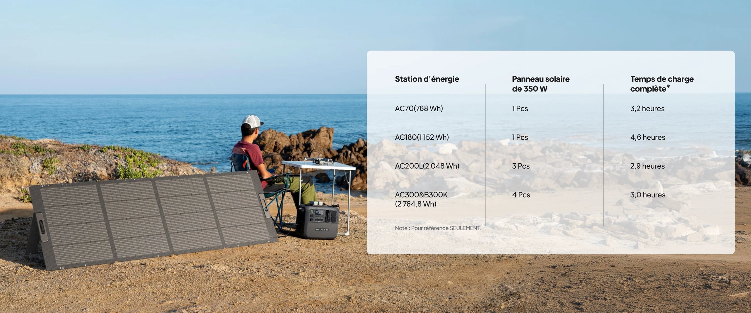 (2) prennent en charge les spécifications de sortie des panneaux solaires BLUETTI. -