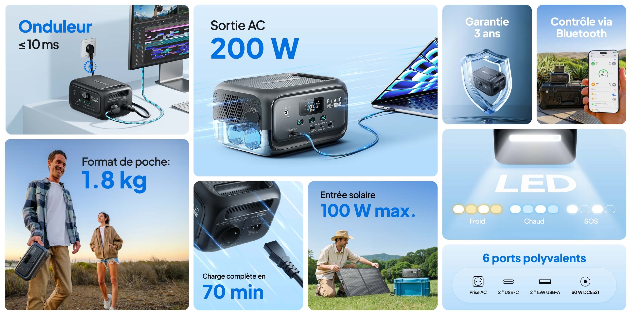 Soirée, voyage, télétravail ou jeux — Elite 10 alimente tous vos essentiels