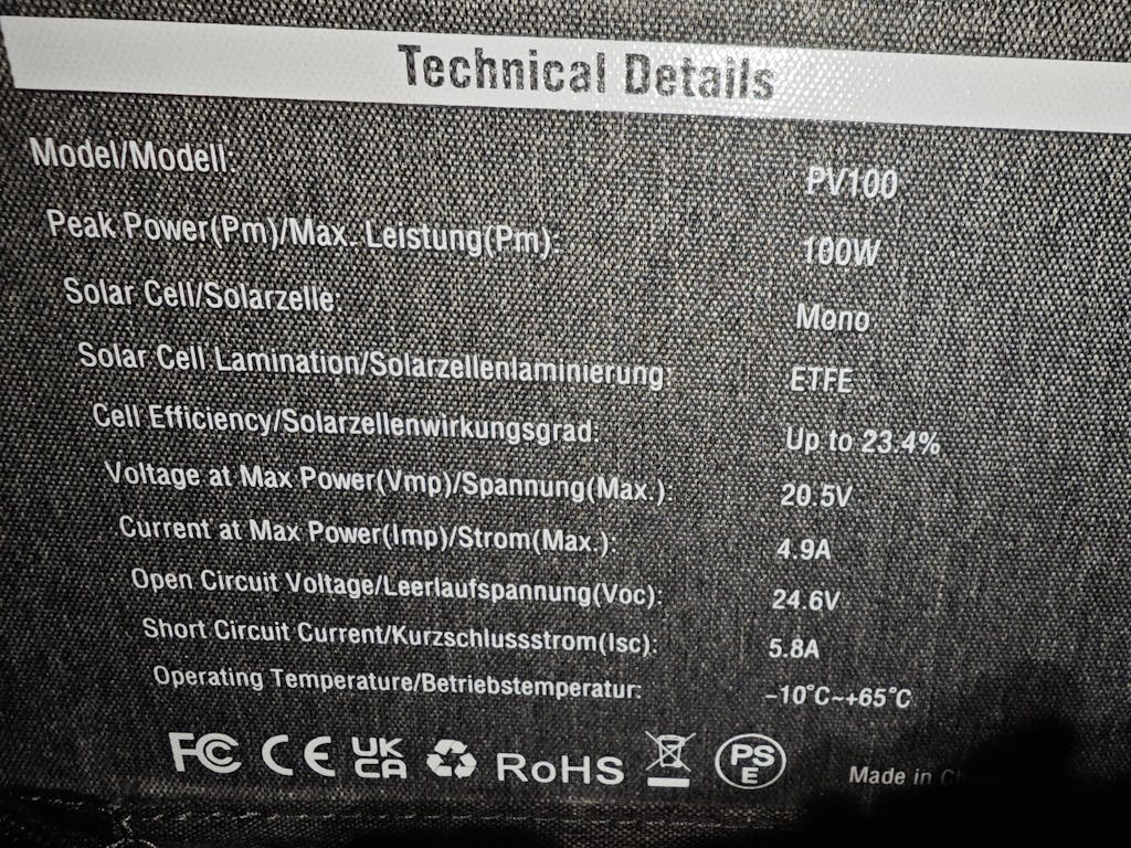 Solaire : 200 W max., 2,2 h