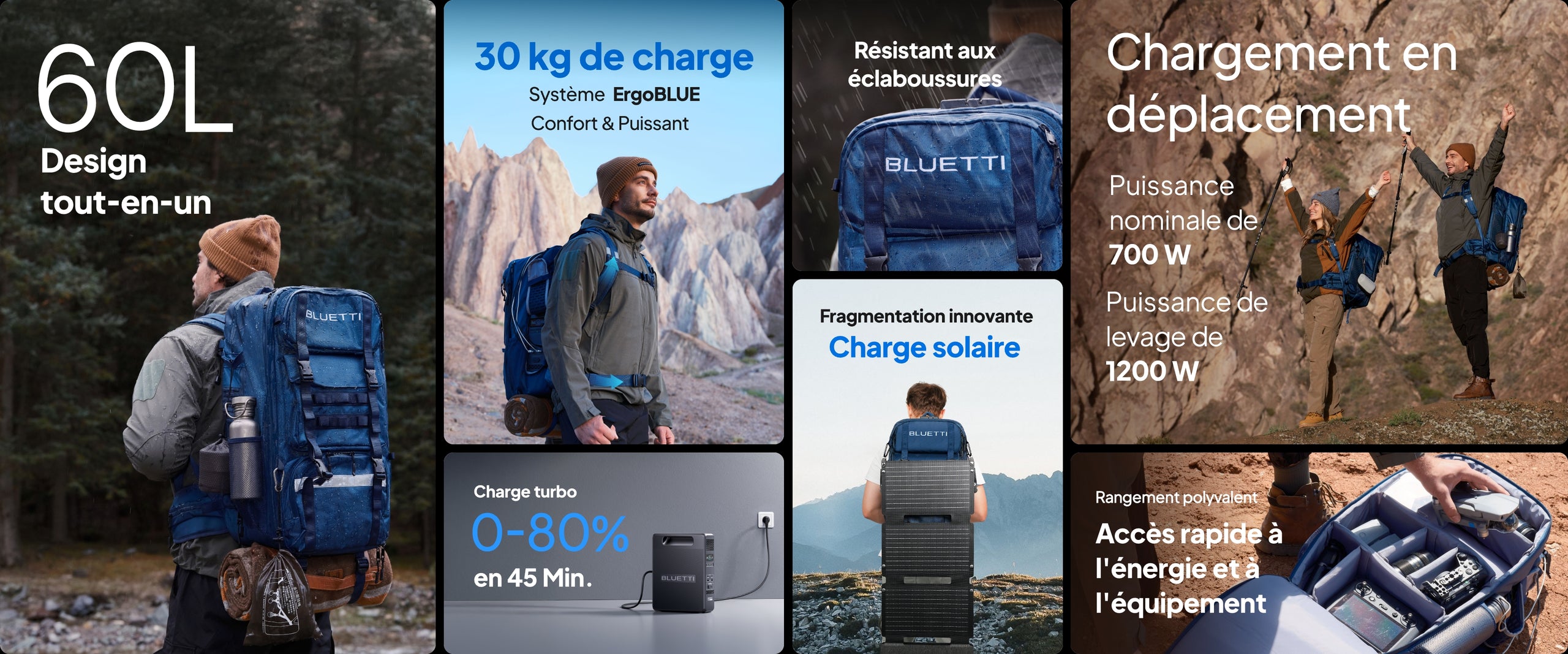 R:Oui, le Handsfree comprend une station d'énergie détachable et un sac à dos - BluePack. Vous pouvez les utiliser indépendamment en fonction de vos besoins..
