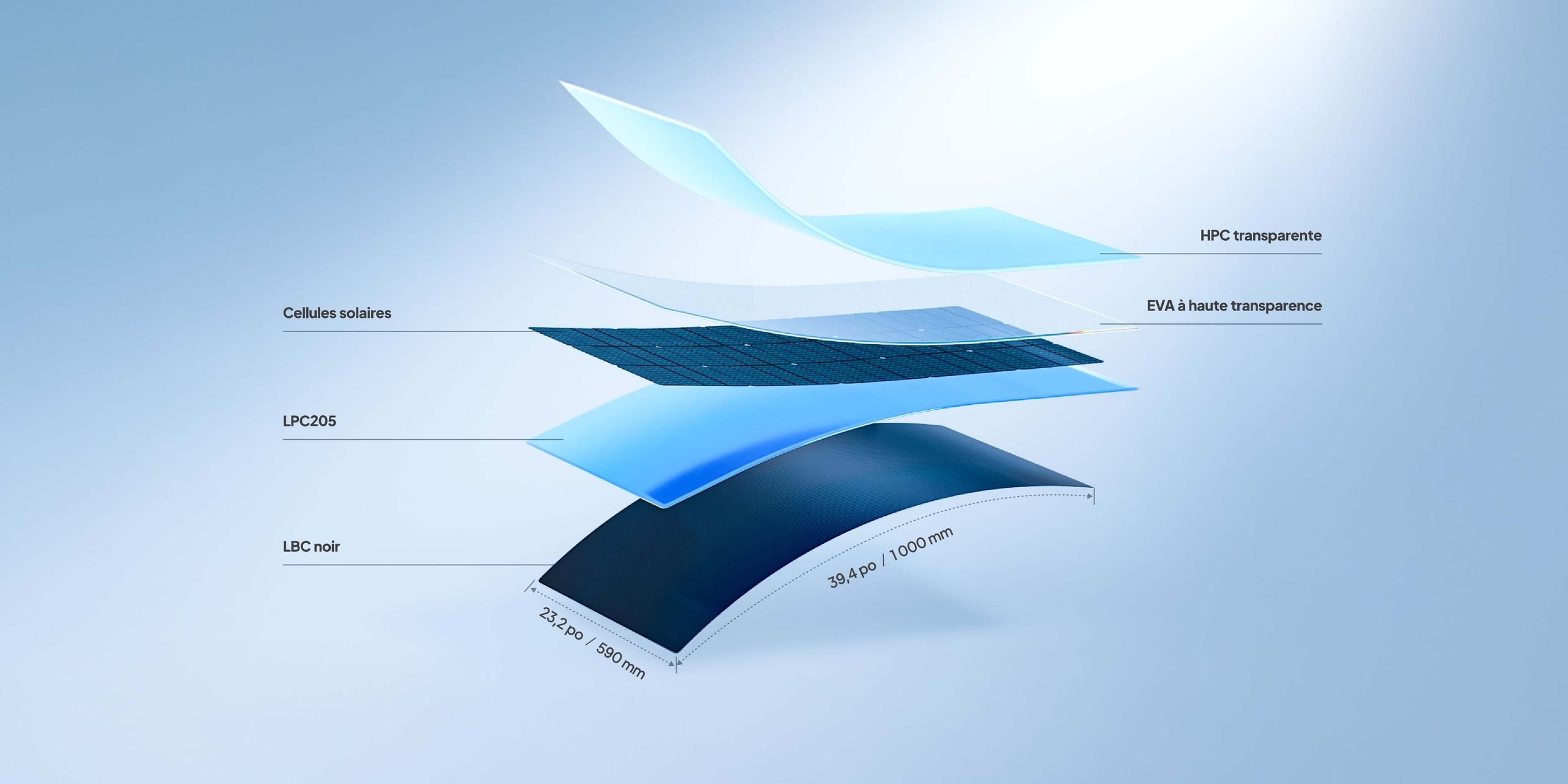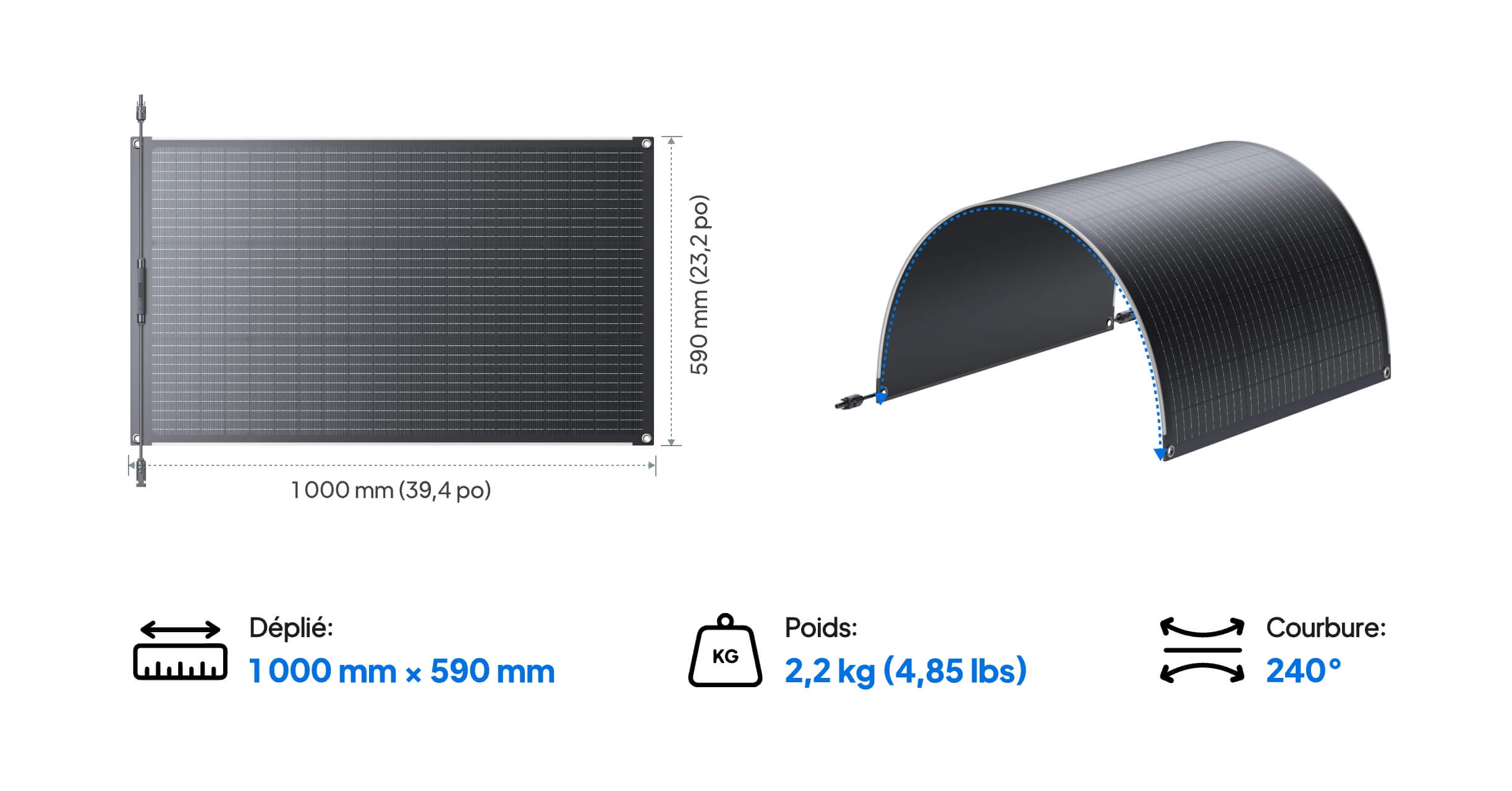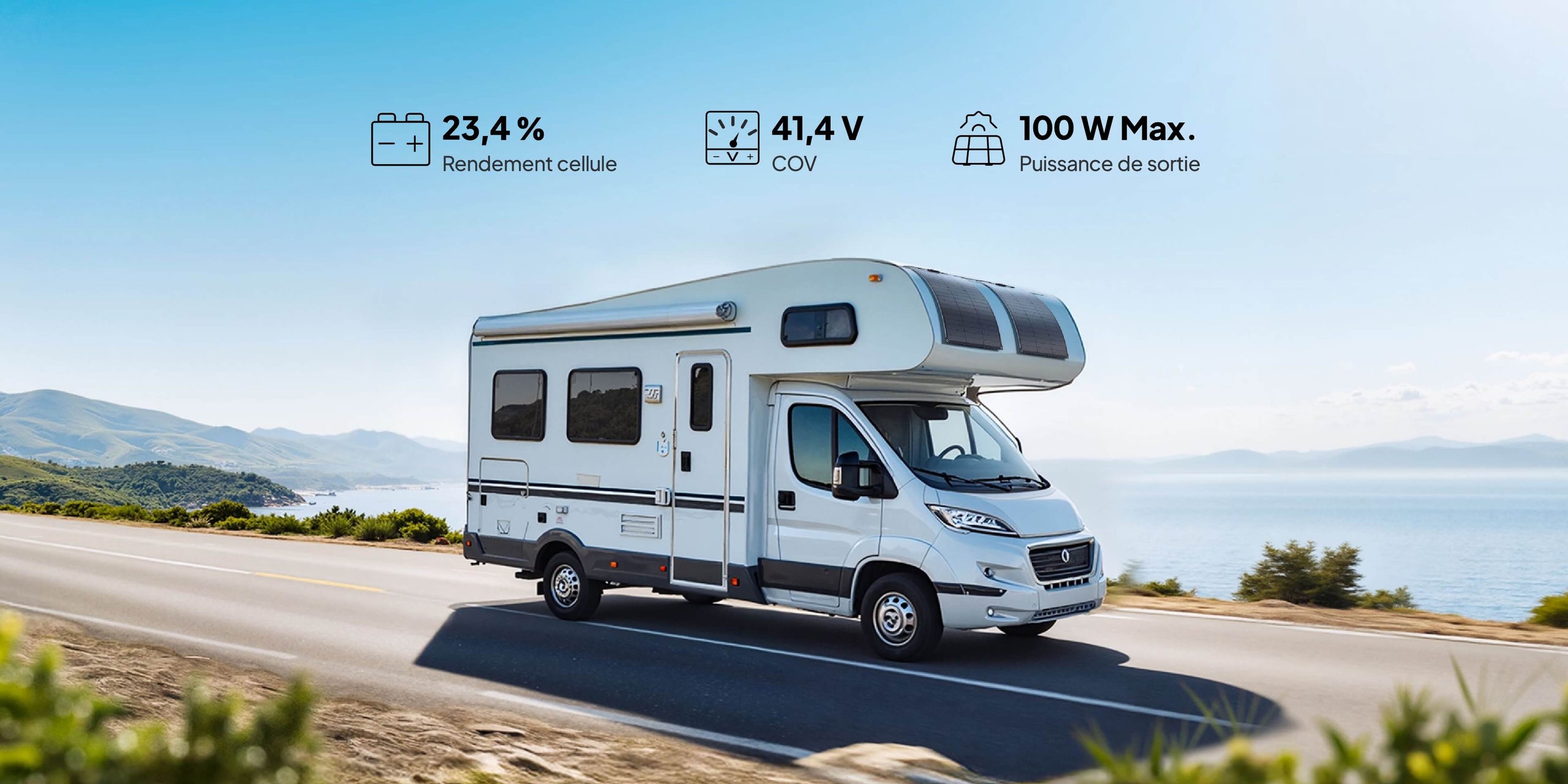 Les panneaux flexibles, comme le PV100 FX, sont plus faciles à installer et moins sujets aux dommages. -
